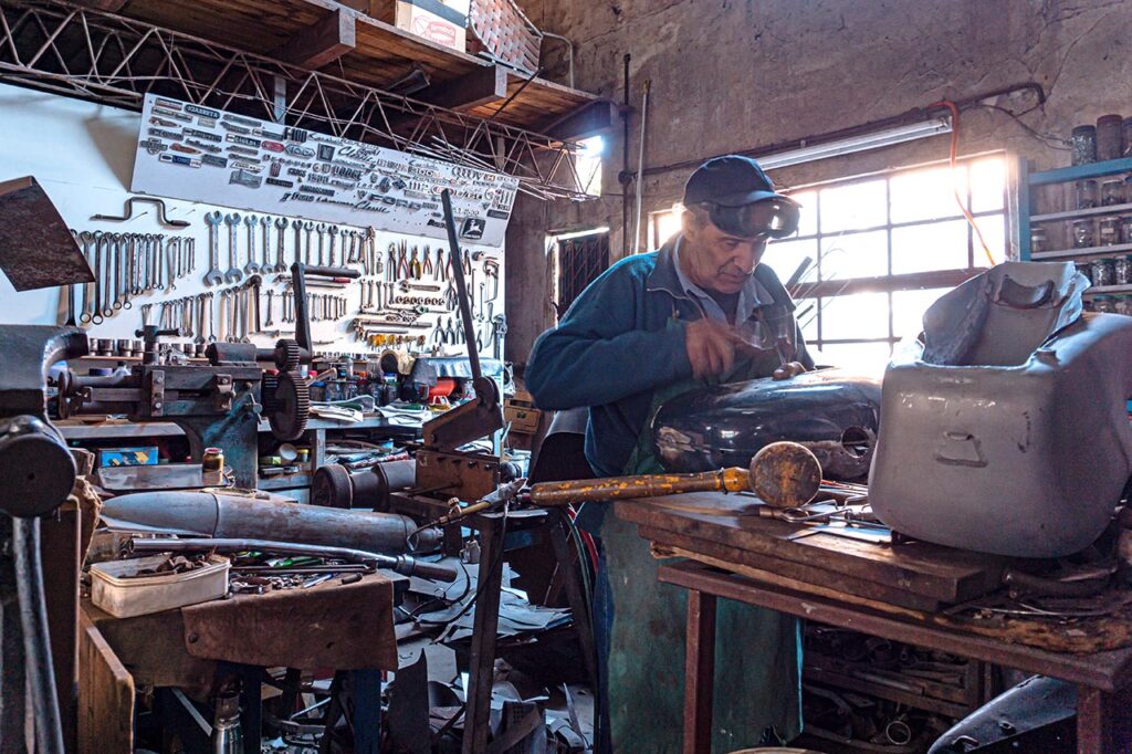 “Fui a otro taller y allí fue diferente. El dueño, me entregó la llave para que me encargara cada día de abrir y cerrar la chapería, me introdujo en los conocimientos básicos del oficio y me permitió experimentar y descubrir cómo trabajar las chapas con los materiales disponibles hasta ese entonces. Y así empecé”. Con pocas palabras, quedó resumido el inicio de esta pasión para Don Alberto.