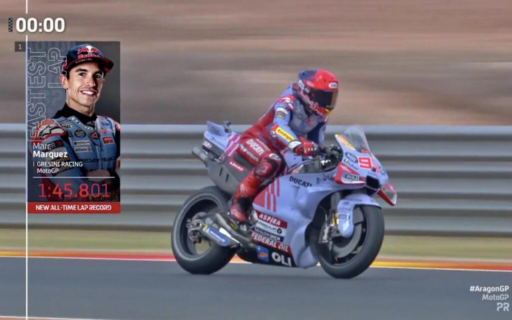 El español del equipo Gresini Racing dominó las dos sesiones del viernes y metió un nuevo récord para el trazado con su Ducati Desmosedici GP23.