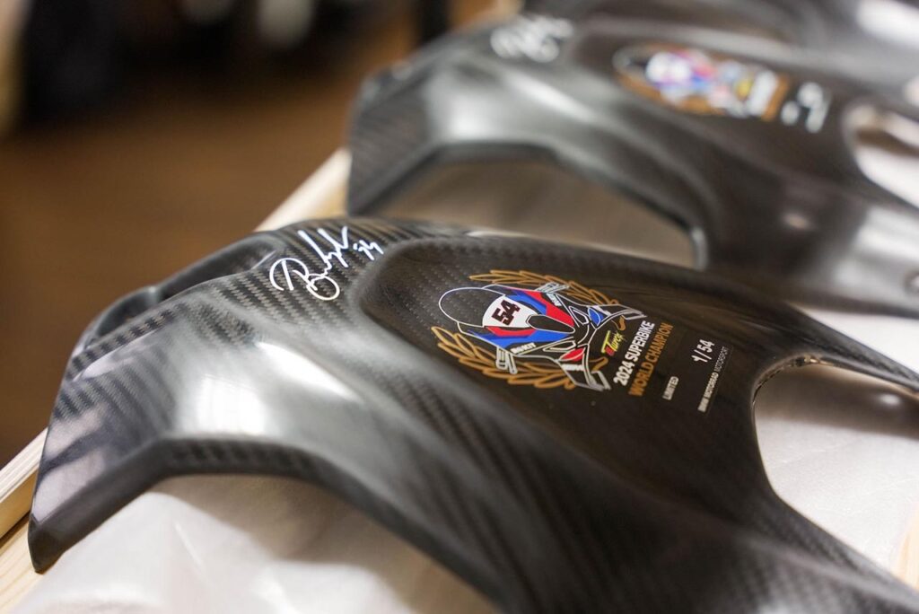 Como era de esperar, cada una de las motos están numeradas de forma consecutiva del 01/54 al 54/54 y presentan un pequeño gráfico que conmemora el título del campeón del Mundo en la tapa del depósito de combustible realizada en carbono. De la misma manera, cada una de las 54 unidades lleva la firma de Toprak Razgatlioglu. Tanto este vinilo conmemorativo como la firma del campeón fueron sellados con laca transparente para otorgarle una máxima duración.