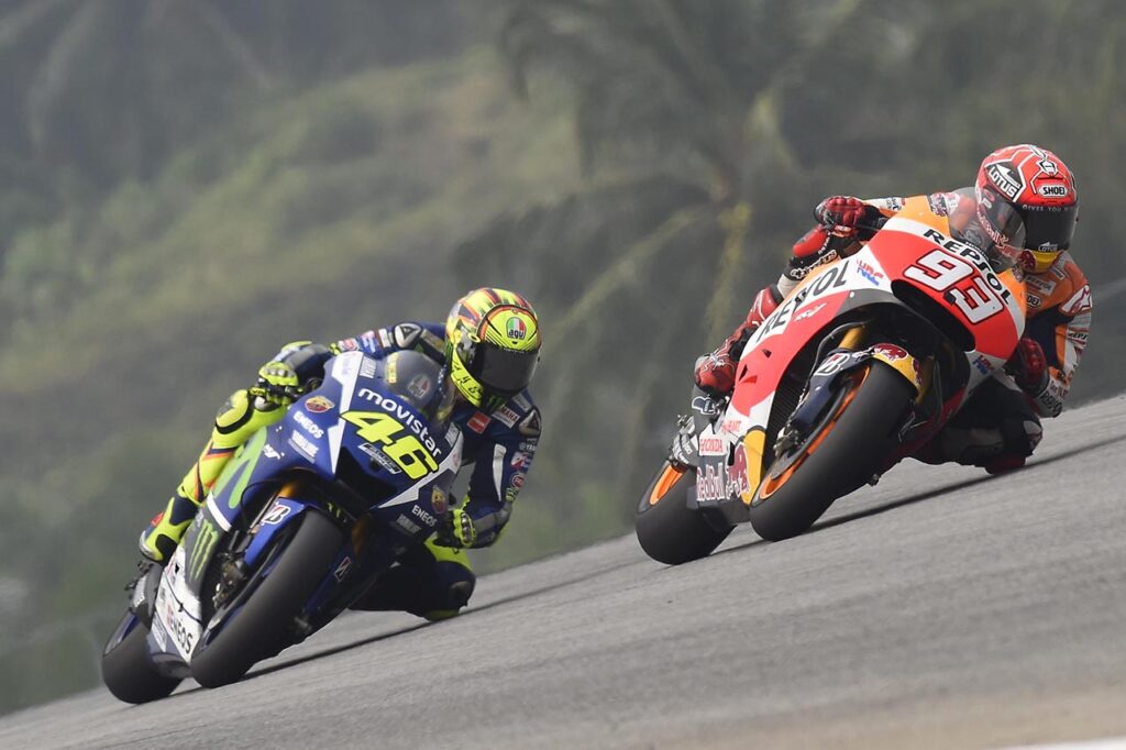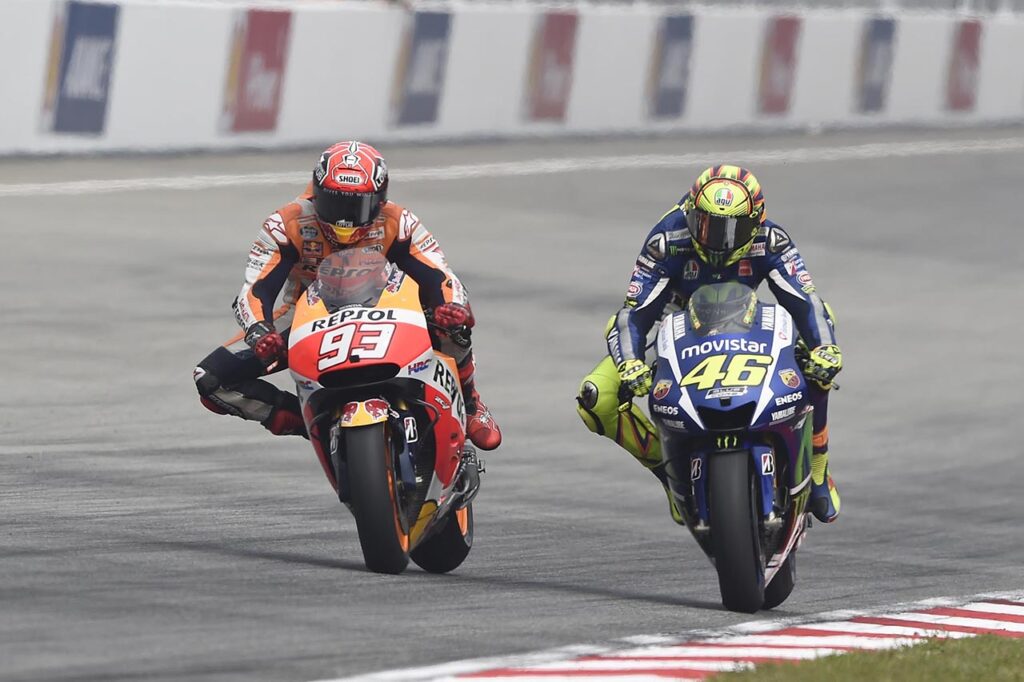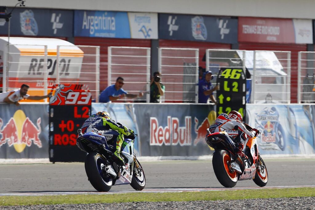 Según Rossi, todo comenzó en el GP de Argentina: “Sabía que, además de Lorenzo, mi principal oponente por el título era Márquez. Tuve la confirmación en Qatar y en Termas tuvimos nuestro primer gran encuentro. Allí le desconté la ventaja en función de otro caucho elegido, lo superé con claridad, pero él intentó chocarme a propósito y entonces nos tocamos. A partir de allí nuestra relación comenzó a desmoronarse”.