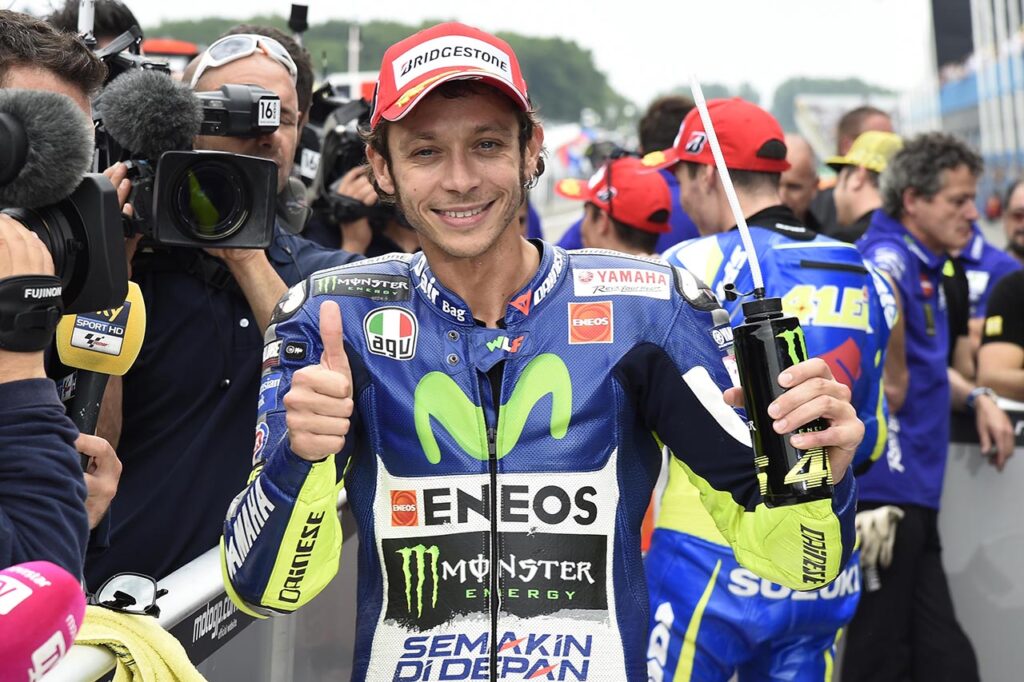 Rossi terminó tercero esa carrera, no fue sancionado como debía serlo “si hubieran decidido que lo había tirado a propósito, me habrían tenido que sancionar con un ‘drive-through’ allí mismo, y en vez de tercero hubiese terminado quinto. Pero inventaron una regla (que se aplicó una sola vez en la historia de MotoGP) y me hicieron largar último en el Gran Premio final de Valencia“.