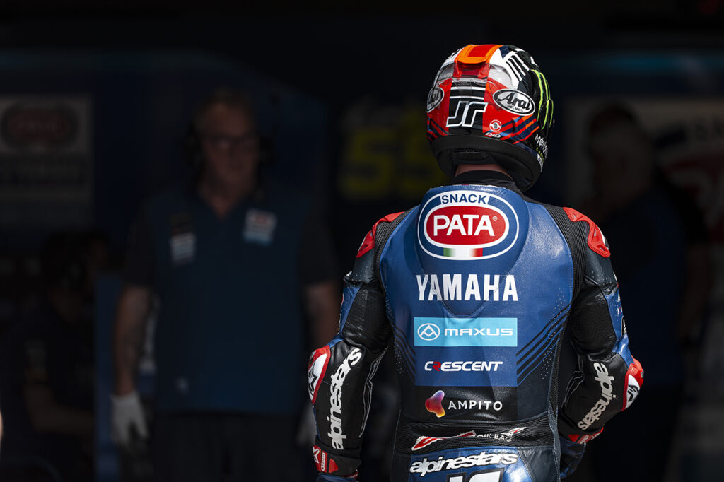 El seis veces Campeón del WorldSBK fue declarado no apto para la Race2 debido a una lesión en la rodilla derecha, por caerse en la curva 3 al inicio del sprint de 10 vueltas, arrastrando consigo, infortunadamente, al piloto del equipo GYTR GRT Yamaha Remy Gardner. Debido a ello, tampoco pudo girar en pista con la moto decorada en homenaje a los 70 años de Yamaha en las carreras.