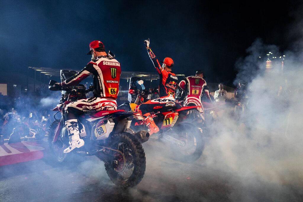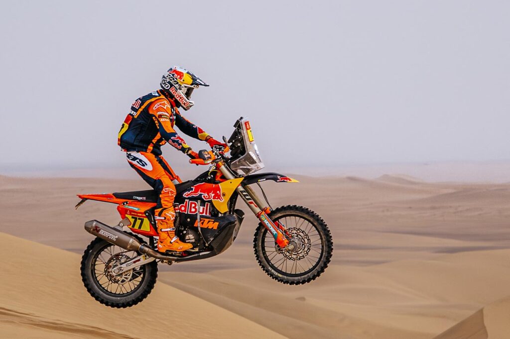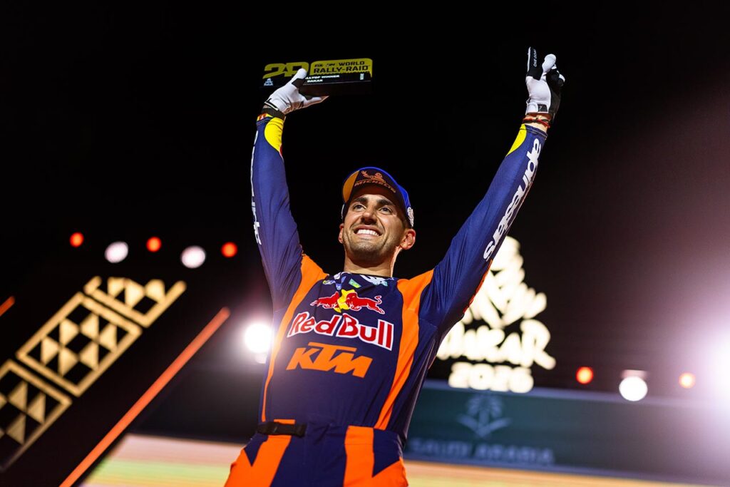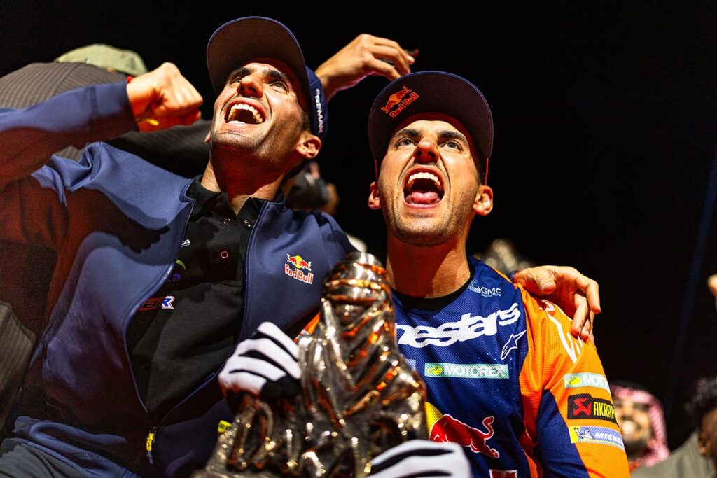 En KTM, la responsabilidad recayó sobre Luciano Benavides tras los contratiempos de Sanders. Su victoria en la etapa 8 lo colocó en la pelea directa. El duelo con Brabec alcanzó un punto clave en la etapa 11, cuando el estadounidense frenó deliberadamente para forzar que el argentino abriera pista al día siguiente. La jugada parecía perfecta: Brabec llegó a la última etapa con una ventaja sólida y el control de la carrera.