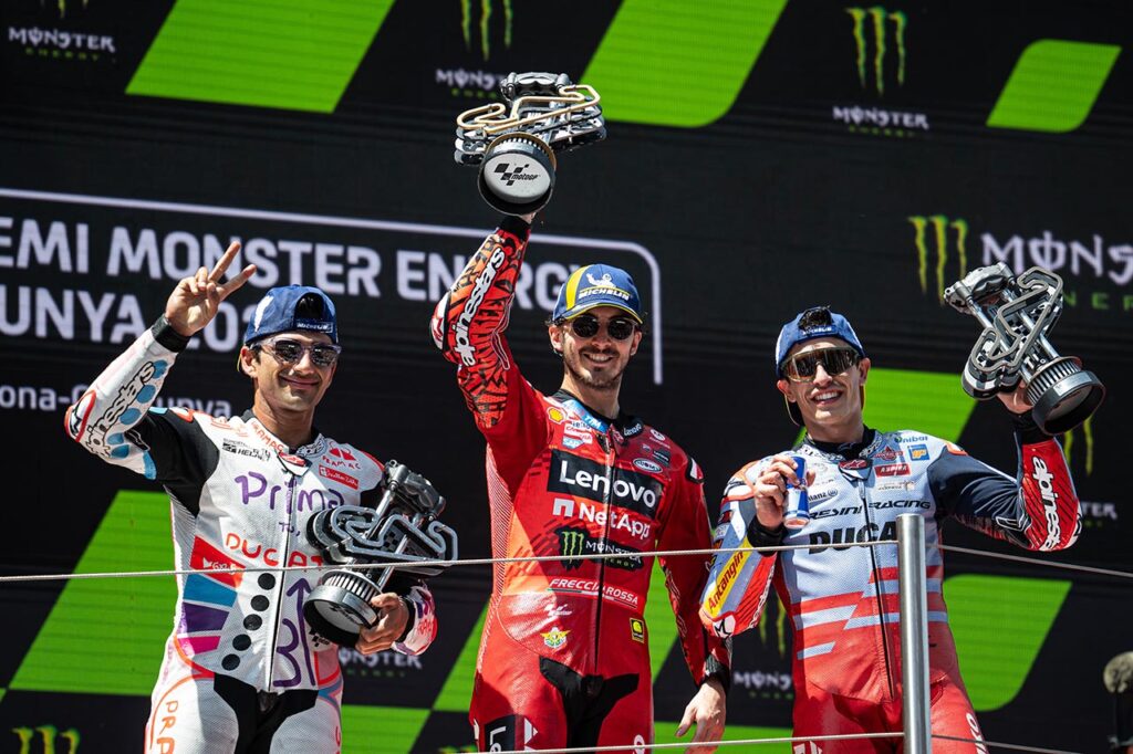 Gran Premio: Pecco Bagnaia, Jorge Martín, Marc Márquez (todos con Ducati)