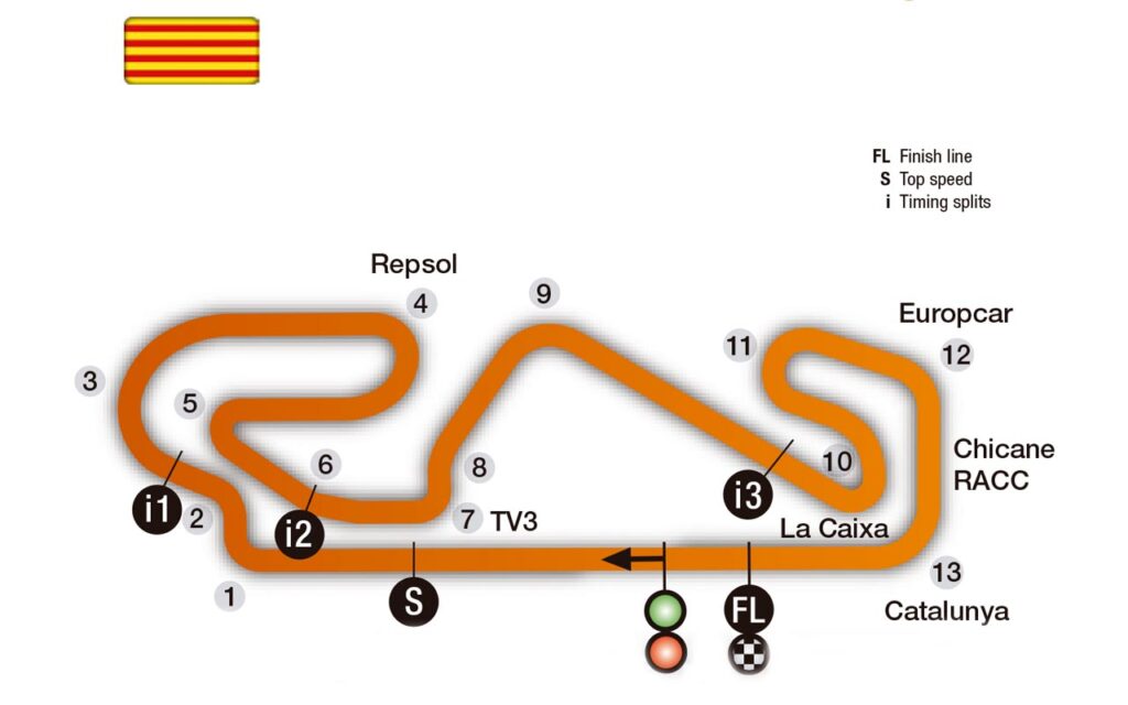 El trazado tiene un dibujo rápido que requiere de mucha concentración. La recta principal es en bajada y en la trampa de velocidad máxima en el sector de frenaje se alcanzan altos registros. Además de la primera curva, tiene otras frenadas violentas como el ingreso a la curva de “La Caixa” al final de la recta opuesta. Después, tramos lineales y retomes se complementan con una secuencia de largos curvones de radio constante.