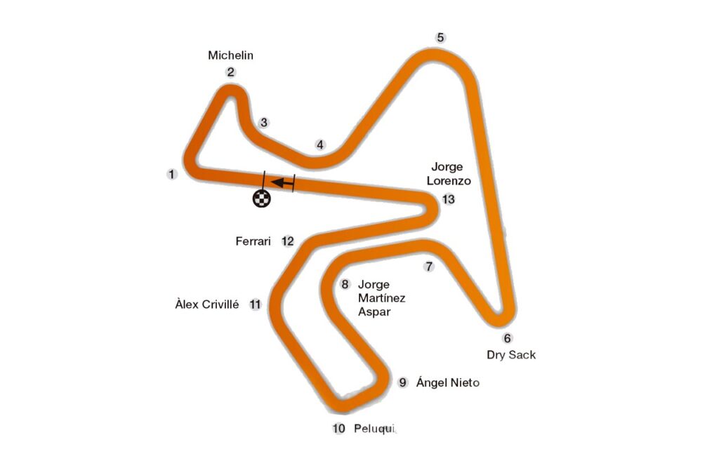 Récord del circuito: Pecco Bagnaia (Ducati) 1:36,025 (165,8 km/h) – 2024