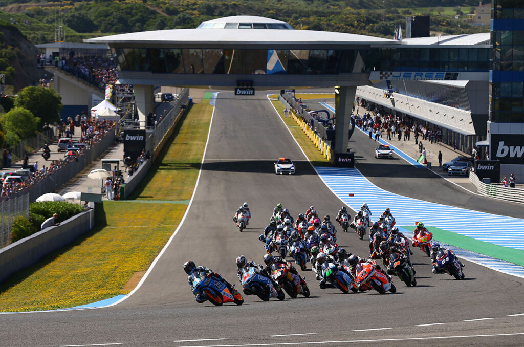 Enclavado en una zona poblada por amantes del motociclismo, Jerez se inauguró el 18 de diciembre de 1985. La primera fecha por el Mundial se disputó en abril de 1987 con victoria para Wayne Gardner (Honda) y desde entonces es una plaza fija en el calendario. Fue remodelado en 1992 y 1994 (en ambos caso se modificó el trazado); mientras que la mayor transformación la sufrió en 2001, cuando además de un reasfaltado se construyó la nueva sala de prensa.