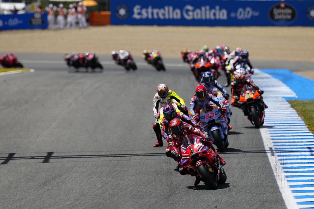 La carrera del domingo fue un contraste de lo vivido el sábado, donde el actual líder provisional en la tabla de posiciones, Jorge Martín, se impuso en una Sprint Race que estuvo condicionada por las caídas. El estado del asfalto de Jerez estuvo inestable luego de la lluvia tempranera y algunos parches de agua fueron los causantes que, entre otros, se fueran al piso: Marc Márquez (cuando lideraba), Brad Binder, Enea Bastianini y Alex Márquez (mientras luchaban por posiciones de podio); así como Maverick Viñales junto Fabio Di Giannantonio y Marco Bezzecchi (en momentos que recuperaban lugares). Antes, también se había caído ‘Pecco’ Bagnaia (por una ajustada maniobra en la curva 1) y después se fueron al piso (por diferentes motivos) Takaaki Nakgami, Alex Rins, Luca Marini y Johann Zarco, para elevar la cuenta de caídas a un total de 16 desparramos.
