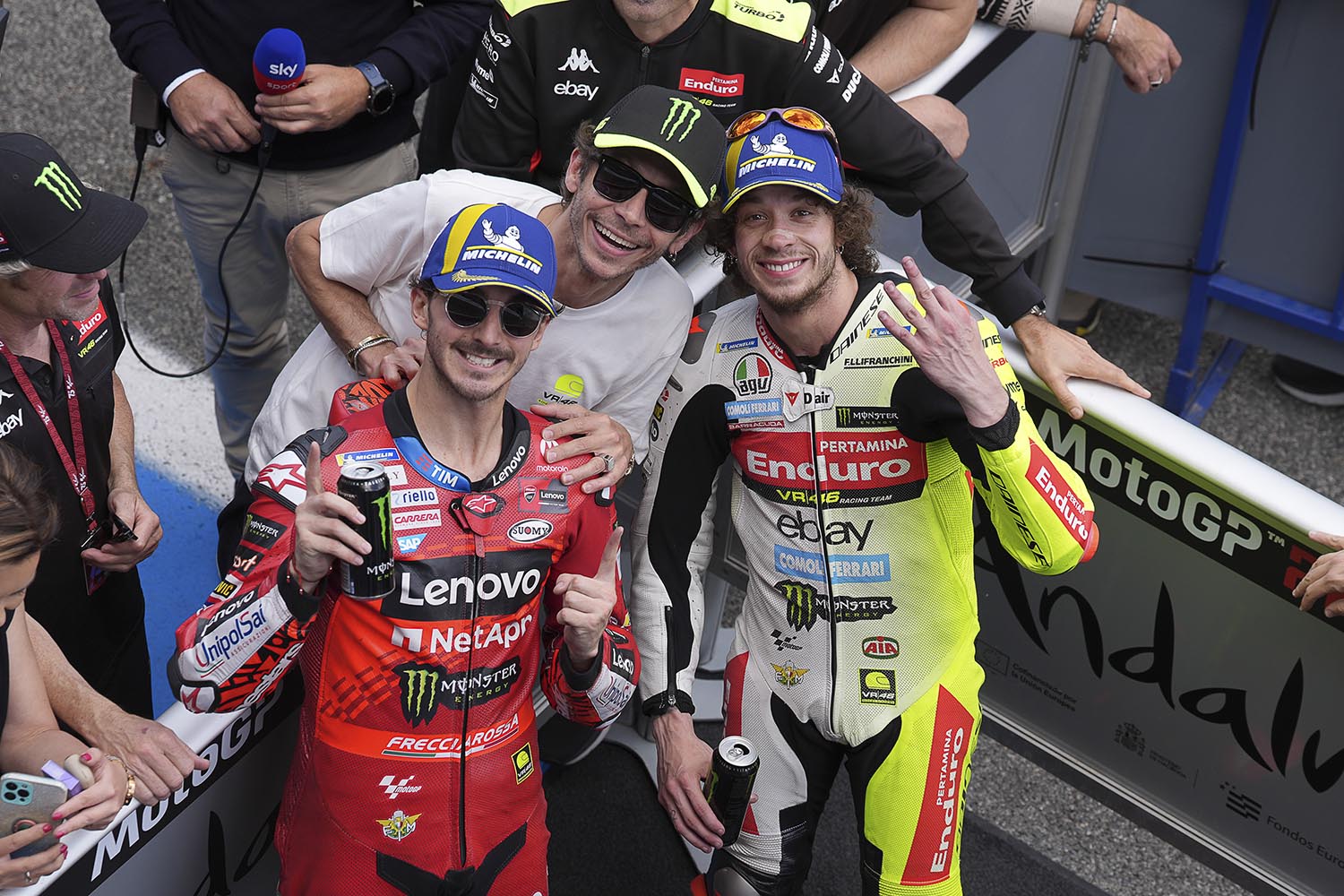 Por detrás, y sorteando también atractivas situaciones, Marco Bezzecchi se estableció como un cómodo tercero, Alex Márquez mantuvo una meritoria cuarta colocación, y Enea Bastianini ganó el quinto lugar en los últimos instantes para generar un nuevo hito de la marca de Borgo Panigale: un 1-2-3-4-5 en un trazado que, hasta hace un par de años, no era favorable a sus unidades Desmosedici.