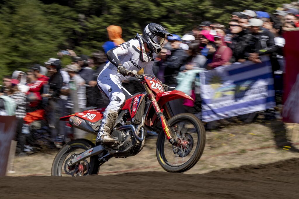 El esloveno, campeón del mundo en 2022, tuvo un inmejorable arranque en la primera fecha del Mundial de Motocross disputada en la Patagonia Argentina al prevalecer en la carrera clasificatoria del sábado y ganarse el derecho de lucir la placa roja que identifica como líder provisional del campeonato.