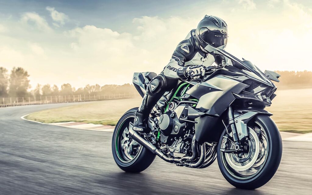 · La Kawasaki Ninja H2 ABS está equipada con un motor de 998 cc sobrealimentado, refrigerado por líquido, en condiciones de erogar una potencia de 231 CV. Cuenta con componentes de alta calidad como frenos Brembo y suspensión Öhlins, horquillón monobrazo, electrónica de última tecnología y una optimizada línea aerodinámica.