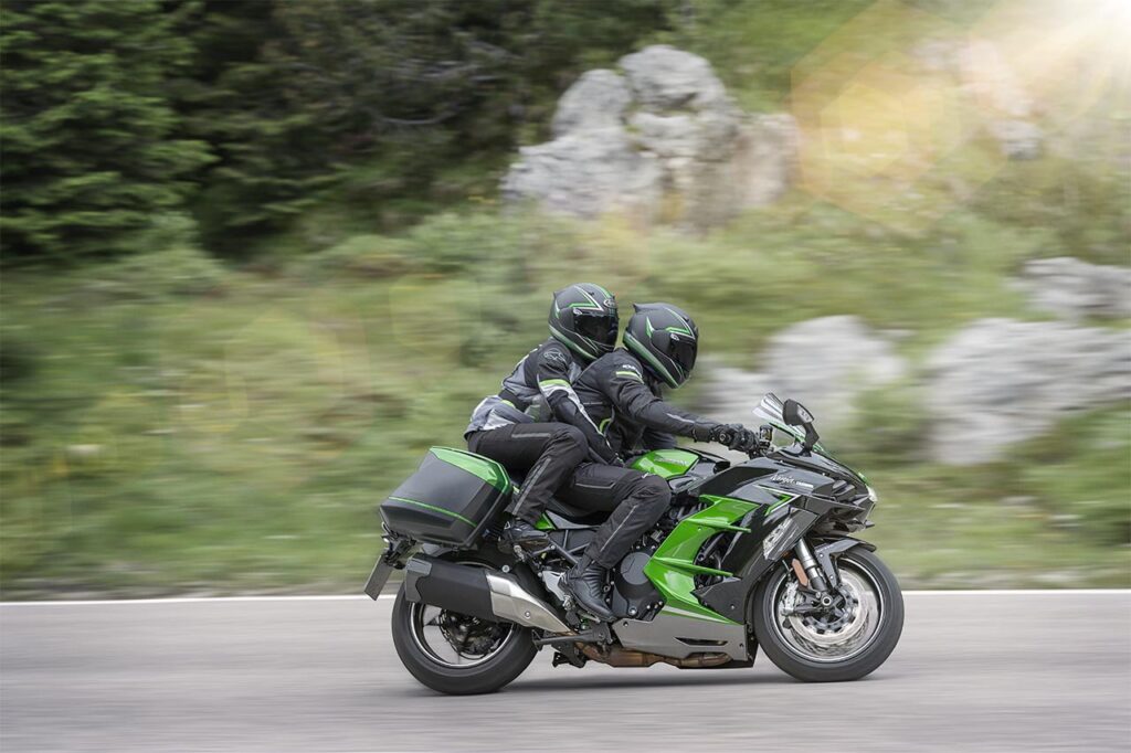 · La Kawasaki Ninja H2 SE SX es un modelo de turismo deportivo que incluye el mismo motor sobrealimentado de 998 cc (con una potencia de 200 CV) y características avanzadas como control de crucero, modos de conducción ajustables y pantalla TFT a color.