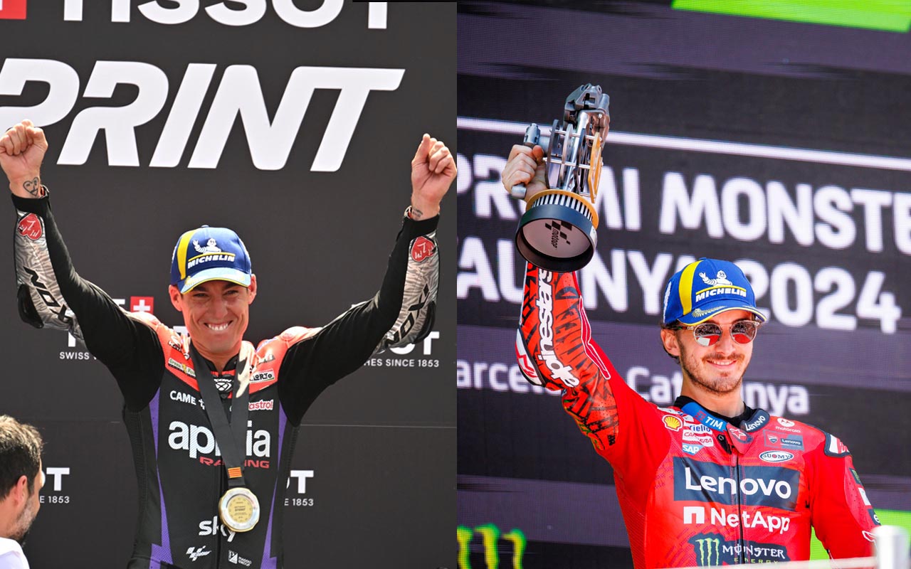 En la Sprint Race, cuando todo indicaba que una Ducati terminaría en lo más alto del podio catalán, con un Bagnaia aguerrido dominando gran parte de la competencia y en curso de quebrar su mala racha en los ‘partidos cortos’, el italiano ‘se metió un gol en contra’. En el transcurso de la última vuelta, ‘Pecco’ fue víctima del resbaloso asfalto de Montmeló (una condición que ya había causado la caída Raúl Fernández y Brad Binder mientras eran punteros), haciendo que perdiera el control de su Desmosedici GP cuando sólo restaban nueve curvas para llegar a la bandera de cuadros. Con esto, el autódromo entero festejó el ‘gol sobre la hora’ de Aleix Espargaró y su victoria ‘en tiempo de descuento’, impensada cuando pasó por penúltima vez por la línea de meta.