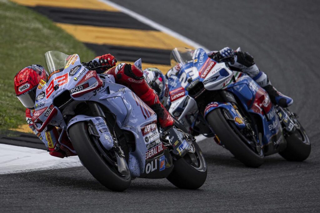 El arranque de Bagnaia en el Gran Premio fue ideal, saltando desde el quinto cajón de la grilla al comando del pelotón en apenas dos curvas. Desde allí, Pecco gestionó de gran manera todo el trámite de carrera para mantener a una prudente distancia a Jorge Martin (Prima Pramac Racing). El italiano marcó en dos ocasiones el récord de vuelta y aumentó definitivamente su ventaja en los últimos giros, para cruzar por debajo de la bandera de cuadros con una ventaja de 8 décimas sobre su compañero de equipo.
