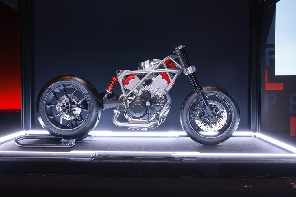 Se trata de un impulsor V3 de 75 grados, con refrigeración líquida que se está desarrollando actualmente para motos de alta cilindrada y que tiene un diseño muy estrecho y compacto. Tal configuración, está acompañada con la adopción del primer compresor eléctrico diseñado para motos. Este elemento, es una primicia mundial, capaz de controlar la compresión del aire de admisión con independencia de las revoluciones del motor, por lo que puede producir un par motor de elevada respuesta incluso a bajas rpm.