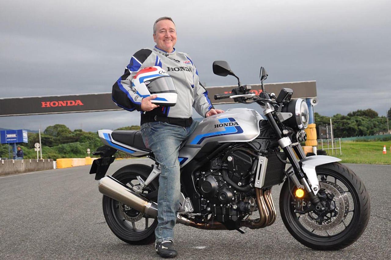 “Uno de los mayores cambios en los últimos 40 años en las motos de calle fue la estabilidad y las suspensiones. Las motos de hoy son estables y perdonan los errores. Cuando competía siempre decía a los ingenieros que quería una moto que me permitiese ir más allá del límite. En lo que respecta a la nueva CB1000F, creo que es fantástico retomar una idea del pasado y convertirla en una moto moderna. Honda consiguió con ella el equilibrio entre una imagen retro y un paquete técnico muy moderno”.
