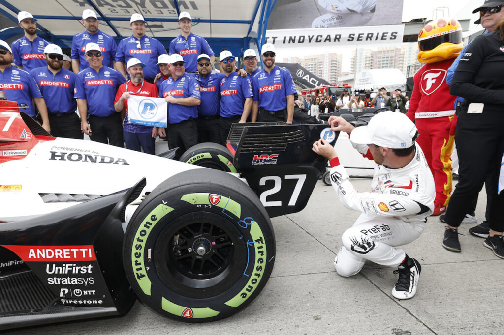 Allí, Kyle Kirkwood (#27) siguió la racha ganadora de Honda desde que se inició la temporada y encabezó un nuevo 1-2 para la marca escoltado por el español Alex Palou (#10), ganador de las dos primeras fechas del año que se llevaron a cabo en Saint Petersburg y el complejo Thermal.