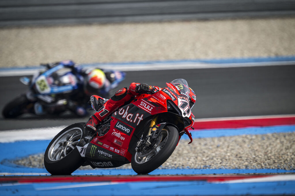 El italiano del Aruba.it Racing-Ducati tuvo dos fallas mecánicas mientras era protagonista de la punta y sumó sendos abandonos (se supo que era un sensor en cortocircuito). Su frustrado liderazgo lo heredó Toprak Razgatlioglu (#1 BMW) en la SuperPole Race (después tendría problemas con los neumáticos) y por Andrea Locatelli (#55 Yamaha) en la Race2 quien, de esta manera, devolvió a Yamaha al triunfo después de 54 carreras (sí, justo el dorsal del piloto que le había entregado su última victoria).