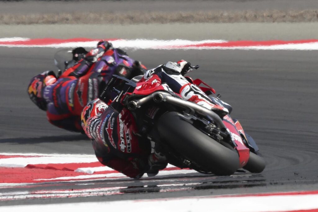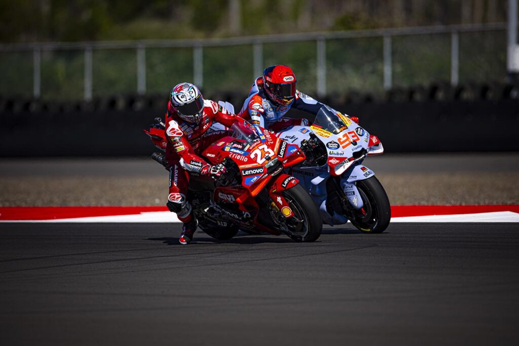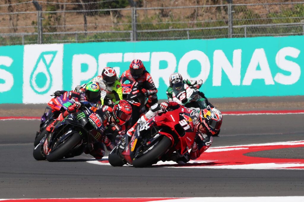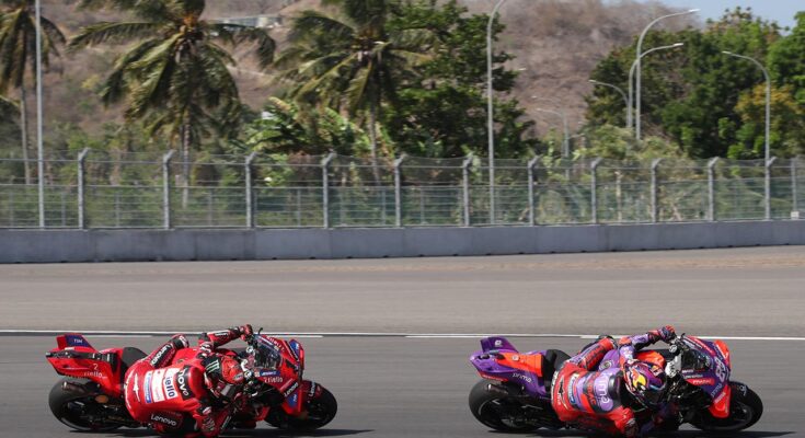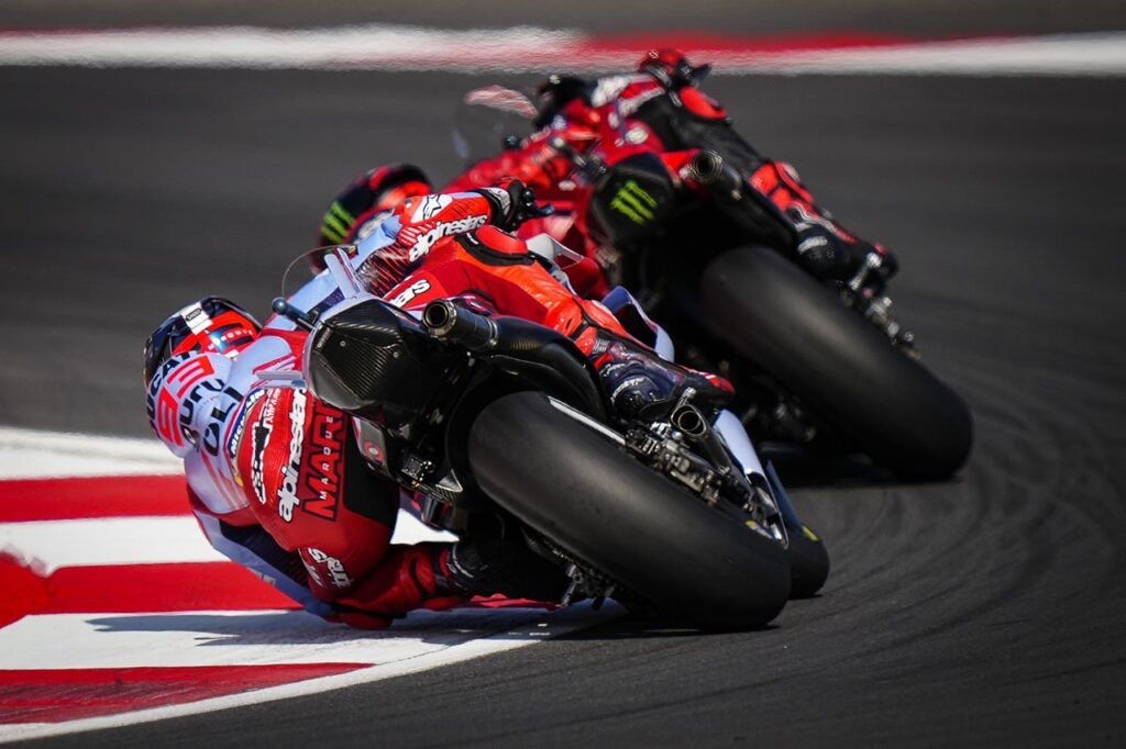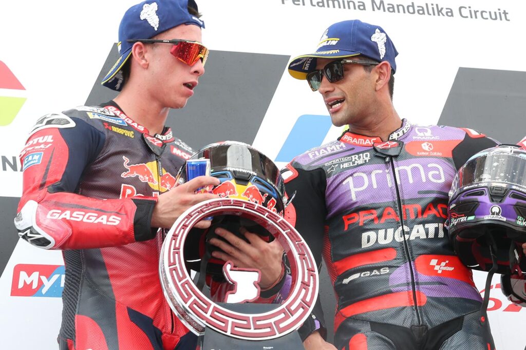 La justificación estadística de Márquez se basa en los tiempos de carrera del fin de semana indonesio. Bagnaia fue 8 segundos más rápido en el total de la Sprint Race del sábado (en relación al año pasado) y Martín ganó el Gran Premio 15 segundos antes de lo que tardó Pecco en 2023.