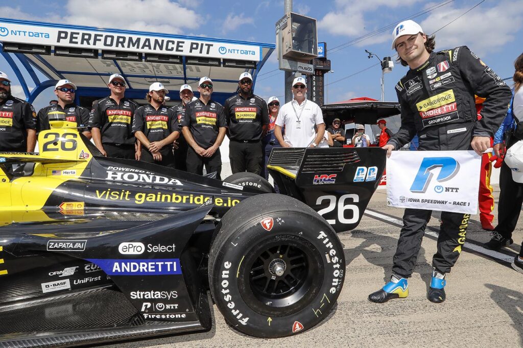 El sábado, todo se había iniciado bien con la primera Pole Position en óvalo conseguida por Colton Herta (#26) en el auto del equipo Andretti Global. Desafortunadamente, después de liderar las primeras 86 vueltas, no pudo mantener el mismo ritmo tras la primera ronda de paradas en boxes y una mala elección del momento de entrar para el segundo reabastecimiento (justo coincidió con una bandera amarilla), terminó por complicarle la noche.