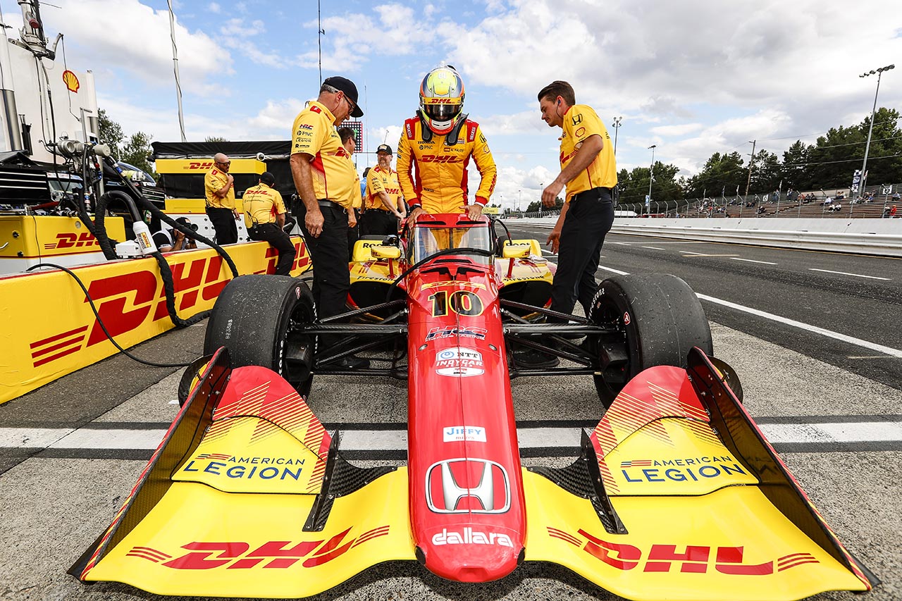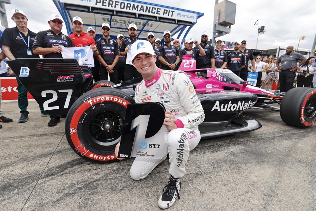 El sábado, mientras Kyle Kirwood (#27) desempataba a favor de Honda el historial 2024 de poles, con el mejor registro a bordo del auto del equipo Andretti Global (sobre 17 clasificaciones, Honda ganó 9 y Chevy 8), Alex Palou tenía serios inconvenientes de puesta a punto para el óvalo y sólo consiguió el 15º mejor registro. Encima, su situación se sabía que iba a empeorar porque al realizar un cambio de impulsor al inicio de la actividad, los 8 puestos de penalización lo mandarían al cajón número 24 de la grilla de partida.