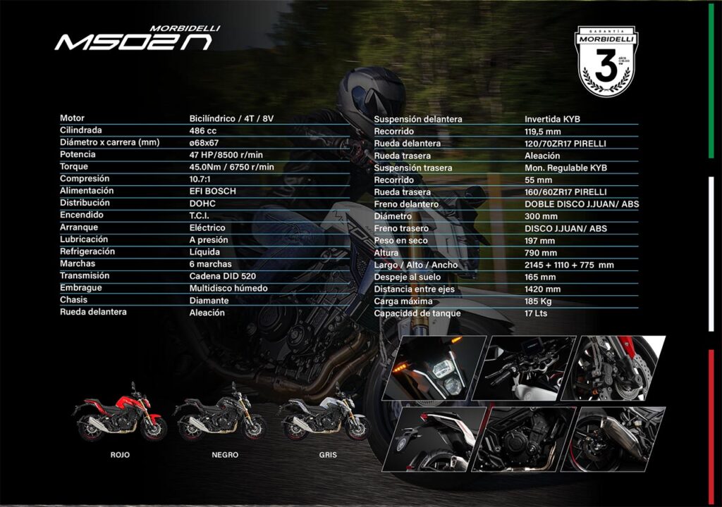 · Morbidelli Naked M502N, es representante en un segmento que creció mucho en el mercado, con el aumento de las rutas turísticas y una demanda creciente de motos de mediana cilindrada para uso mixto (ciudad y viajes).