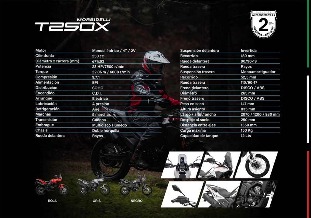 · Morbidelli T1002VX, ubicada en la cúspide de la familia Adventure, con un motor potente, tecnología avanzada y un diseño robusto. Se presenta como moto Adventure de mayor cilindrada del segmento medio, y una de las más equipadas del mercado local.