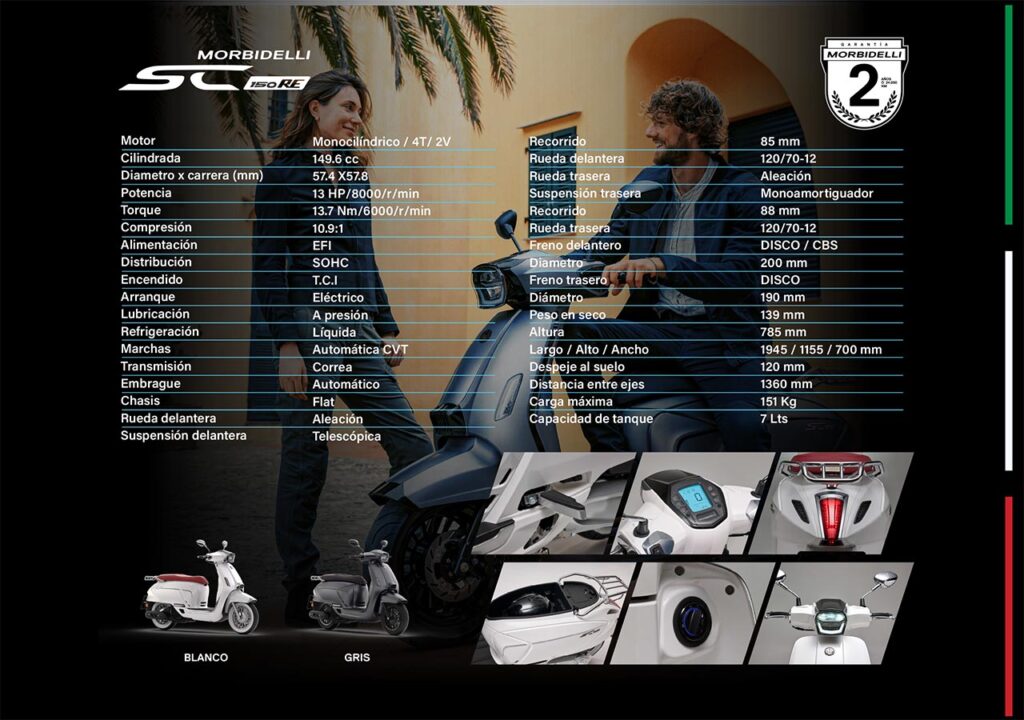 . Morbidelli SC150RE, un scooter que es el compañero ideal para quienes buscan practicidad y estilo en su día a día y que se destaca por la comodidad y funcionalidad.