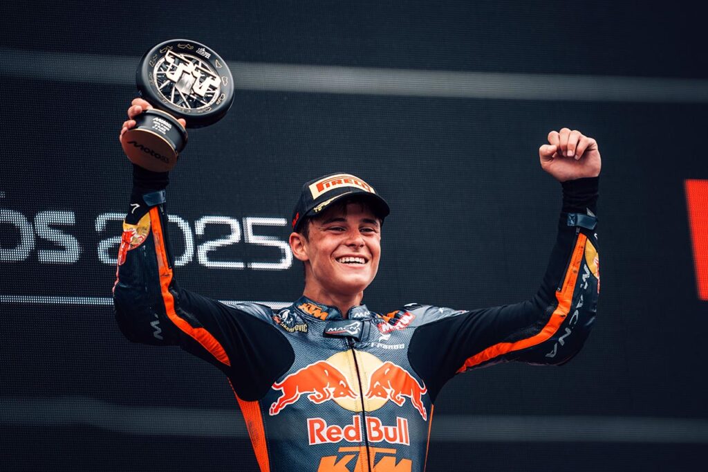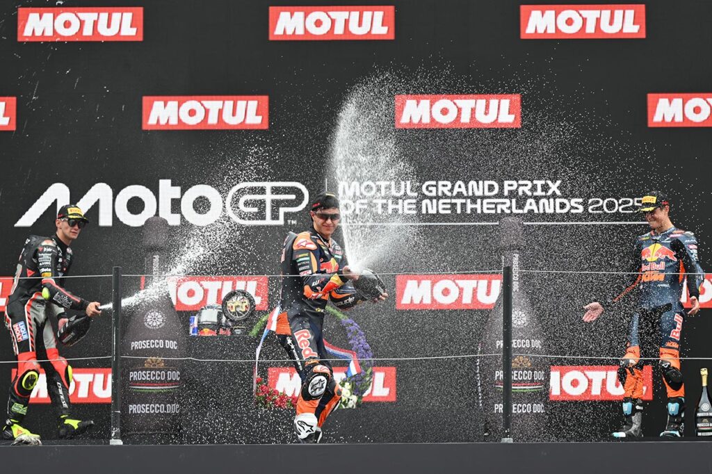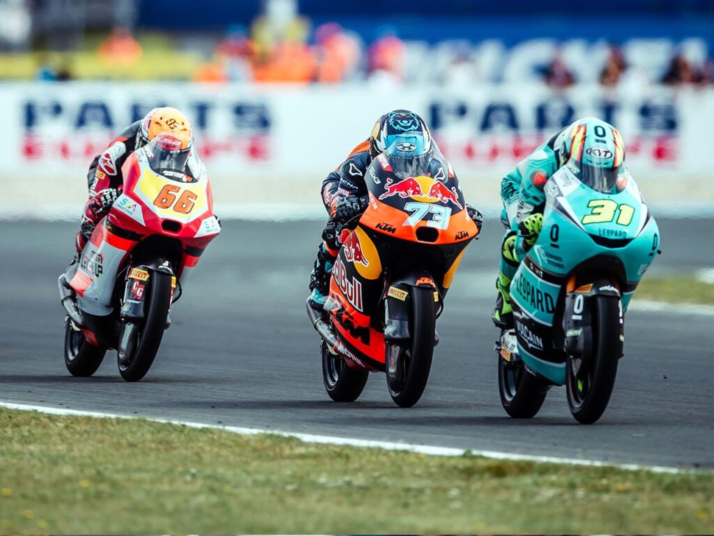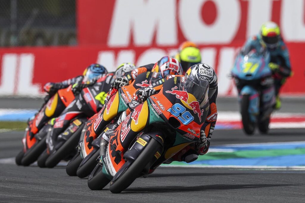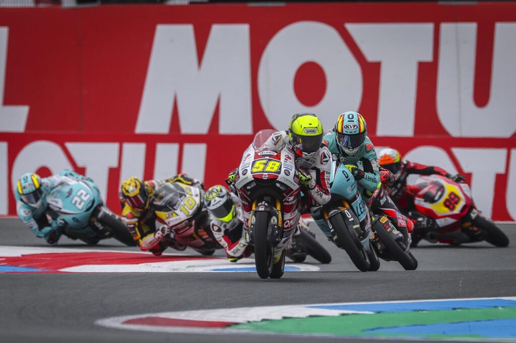 En Moto2, se registró la primera victoria del brasileño Diogo Moreira, después de marcar su tercera pole position consecutiva (Motorland, Mugello y Assen) y para digerir ese triunfo que tenía atragantado desde Aragón, cuando el turco Denniz Öncu le arrebató el éxito por apenas 3 milésimas (y en Italia quedó a los pies del podio al terminar cuarto).