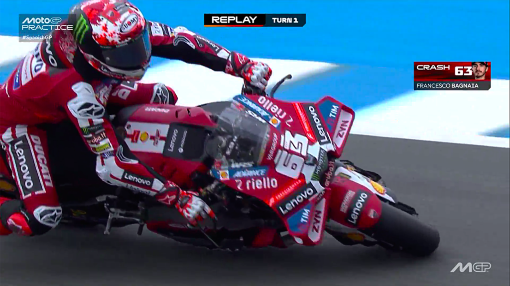 Lo más llamativo del viernes fue la recuperación de Pecco Bagnaia y Jorge Martín, ambos víctimas de sendas caídas y cómo se adaptaron velozmente las motos de Noale y Borgo Panigale en los minutos cruciales para buscar un sitio en la Q2.