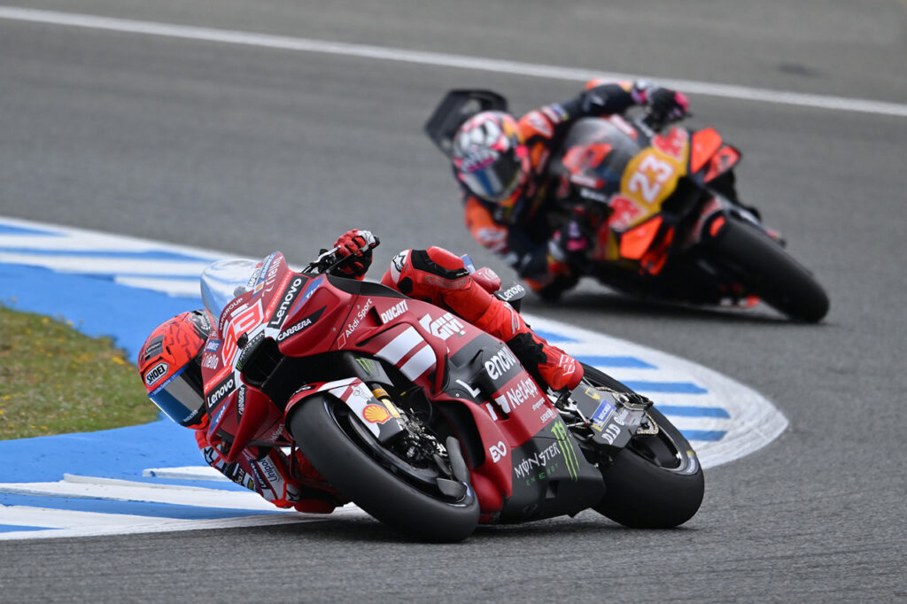 Sin embargo, luego de un paréntesis de tres semanas (porque se reubicó el GP de Qatar por la guerra en Medio Oriente), muchos anticipaban dos hipótesis: una consolidación del dominio de Aprilia o una reacción por parte de Ducati (especialmente a cargo de Marc Márquez).