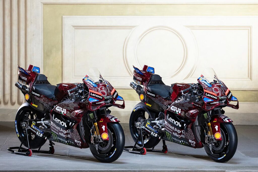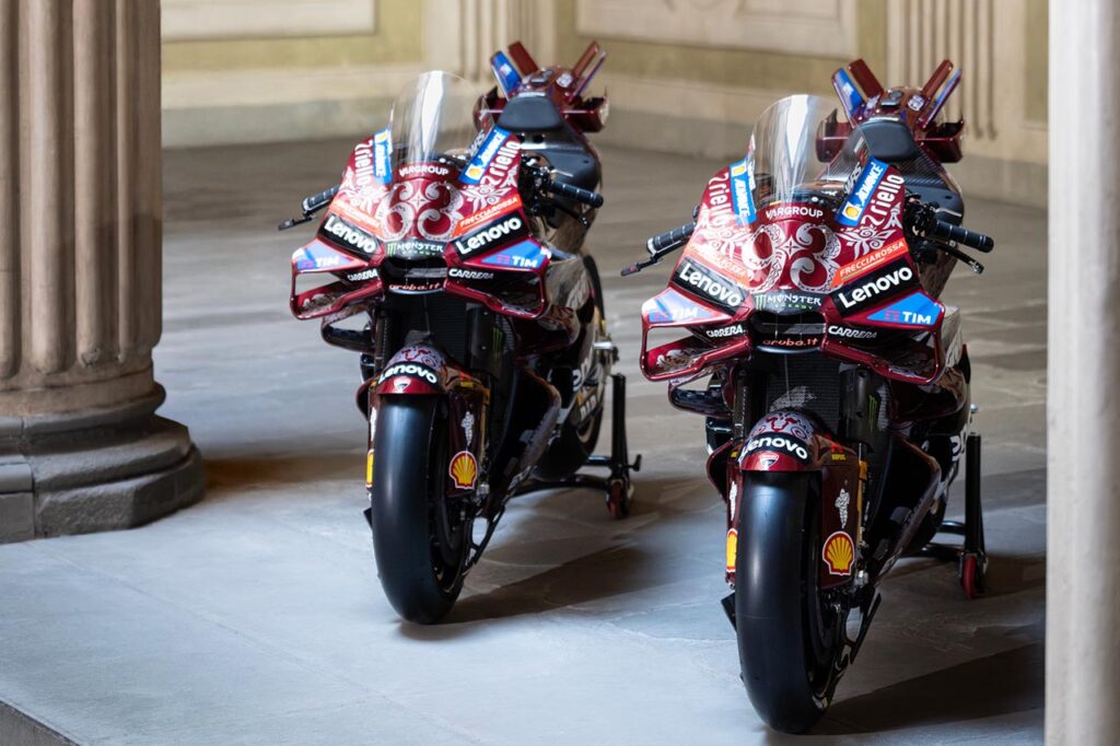 En ocasión del Gran Premio de Italia, Ducati vistió al equipo Ducati Lenovo Team con un diseño especial para celebrar la excelencia del arte y del ingenio que se desprenden del Renacimiento italiano.