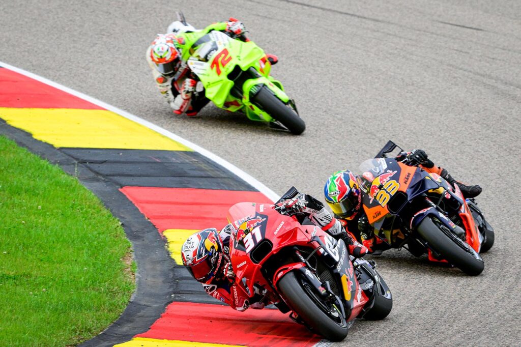 A ‘Pecco’ Bagnaia su caída le facilitó las cosas. Ganó su cuarto Gran Premio consecutivo, el primero en Sachsenring y tuvo el honor de encabezar un podio que también integraron los hermanos Márquez, en otra actuación que fue para la historia y que a muchos le costará olvidar.