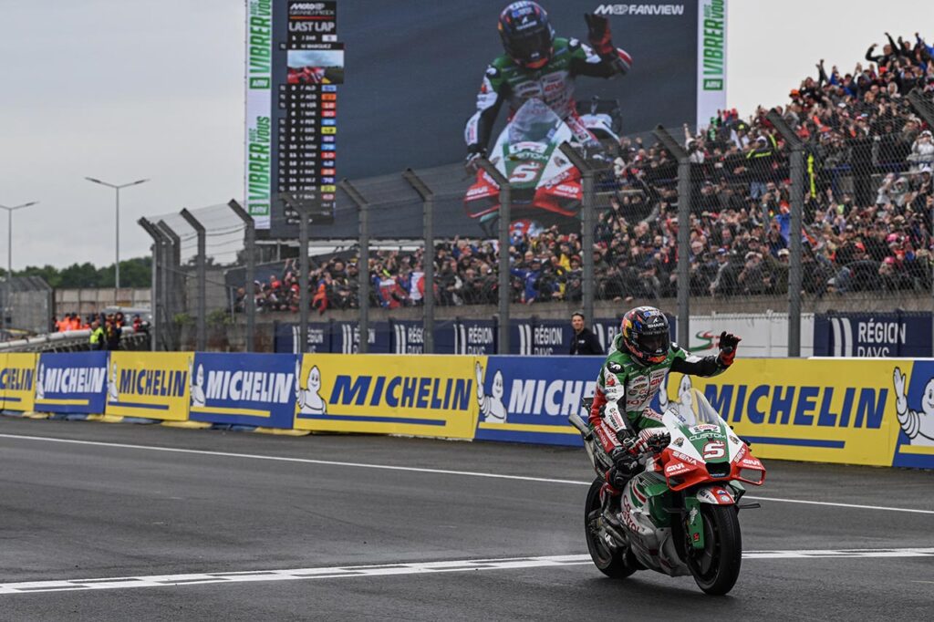 La victoria de Zarco no solo hizo vibrar a Le Mans: también puso fin a la impresionante racha de 22 victorias consecutivas de Ducati; mientras que Marc Márquez (Ducati Lenovo Team) y Fermín Aldeguer (Gresini Racing) completaron el podio.