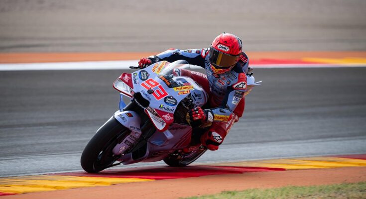 El ocho veces Campeón del Mundo dominó absolutamente todas las sesiones en Aragón, así como todas las vueltas de la carrera Sprint y del Gran Premio. No sólo se adjudicó su victoria número 60 en MotoGP, sino que también se llevó el título de ‘Grand Slam’, como había sucedido con Pecco Bagnaia en Assen (arriba todo el fin de semana).