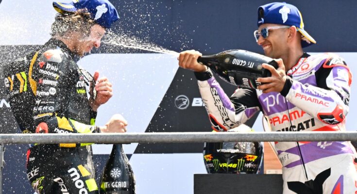 Este 24 de junio pintaba como un lunes tranquilo. Salvo por la conmemoración en Argentina del Día del Piloto, en homenaje a un nuevo aniversario del natalicio del ‘Quíntuple’ Juan Manuel Fangio, no había grandes novedades de impacto. Pero… desde Europa llegaron noticias frescas en relación al mercado de MotoGP y no se trata de noticias corrientes. Si Ducati se llevó todos los titulares con el ‘pase de todos los tiempos’ al confirmar a Marc Márquez como piloto oficial para una de sus Desmosedici GP a partir de 2025; Aprilia no dejó que se le escaparan las otras ‘piezas gordas’ del tablero y la próxima temporada saldrá a la cancha con dos ex pilotos de Borgo Panigale, los dos que estuvieron más cerca del campeón ‘Pecco’ Bagnaia: su escolta Jorge Martín y el tercero Marco Bezzecchi.
