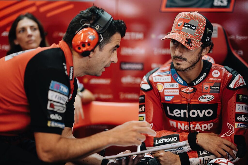Del lado de sus técnicos, actuaron sobre la electrónica del control de tracción para darle mayor importancia a la sensibilidad de la muñeca de ‘Pecco’ tanto al acelerar como frenar (https://tuanews.com/austriangp-francesco-y-franco/). Por el lado de los chicos de Valentino, colaborar en todo lo posible para que el #1 se quede en casa.