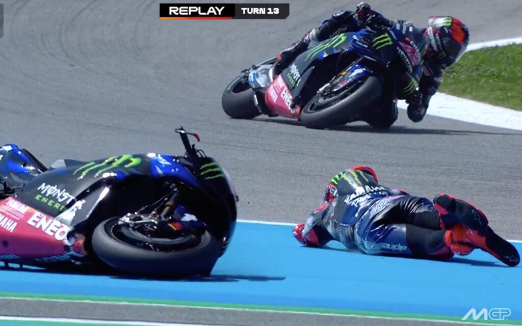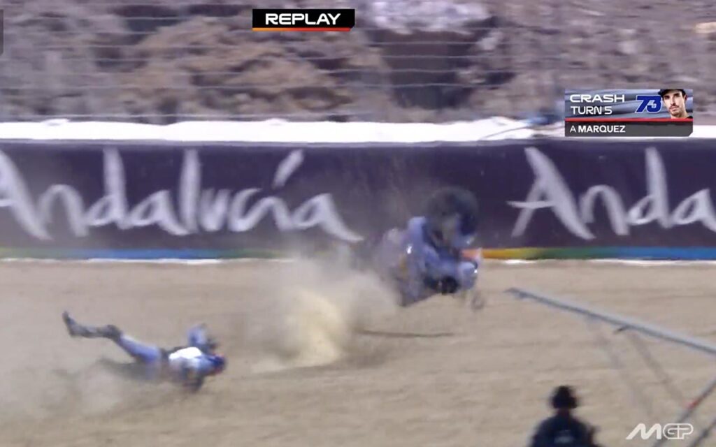 El ya mencionado Alex Márquez (Ducati) en dos ocasiones (mañana y tarde), Jack Miller (Yamaha) en dos ocasiones (las dos veces a la tarde), Fabio Quartararo (Yamaha), Brad Binder (KTM), Raúl Fernández, Augusto Fernández, Ai Ogura (los tres con Aprilia) y Joan Mir (Honda), todos a la tarde, cuando el piso estaba más caliente. Hasta Marc Márquez (Ducati) estuvo a punto de visitar el asfalto, si no fuera por una de sus mágicas ‘salvadas’.