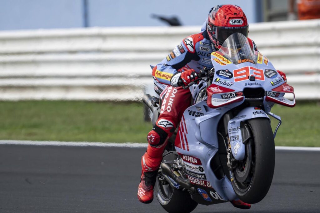 Como ya viene sucediendo en las últimas ocasiones, Ducati fue la marca de referencia en la pista y, por detrás de ‘Pecco’ quedaron otras tres Desmosedici GP: Jorge Martín (que tuvo una caída), Marc Márquez y Enea Bastianini (todos encerrados en 6/10).