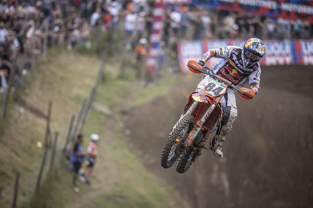 Siete días más tarde, la cita fue en el Zelta Zirgs Motocenter de Kegums, para un GP de Letonia que tuvo caída de agua el sábado y por eso la superficie arenosa del trazado estuvo más compacta y peligrosa de lo habitual. Igualmente, en plena fase de ‘volver a los primeros planos’, Herlings hizo tabla rasa, ganó las dos mangas, escoltado otra vez por Coenen y Febvre y se instaló con prepotencia en el Top10 de la tabla provisional, cuando justamente arrancaba la segunda parte del torneo.