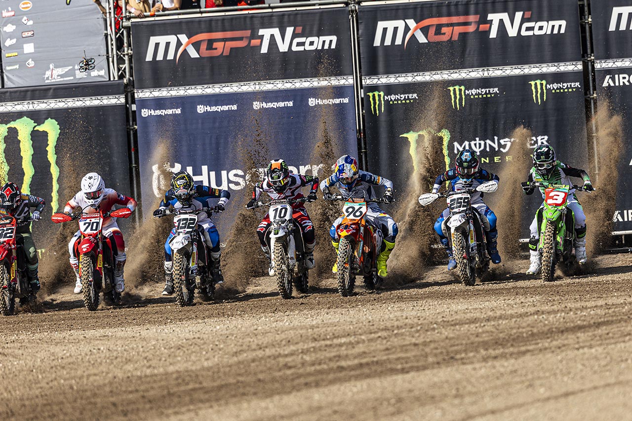La clase MX2 experimentó el regreso en buena forma del vigente campeón, Kay de Wolf (#1), quien consiguió su primera victoria en un Gran Premio en más de dos meses con la Husqvarna del Nestaan Factory Racing; por delante de otro recuperado para los primeros planos: Andrea Adamo (#80), quien logró un excelente segundo puesto por delante de su compañero de Red Bull KTM Factory Racing, Sacha Coenen (#19), quien se alzó con el tercer puesto por cuarta vez lo que va de la temporada.