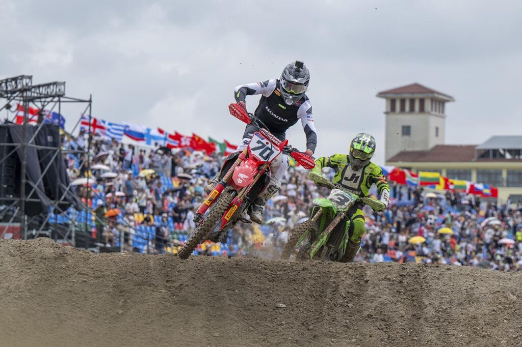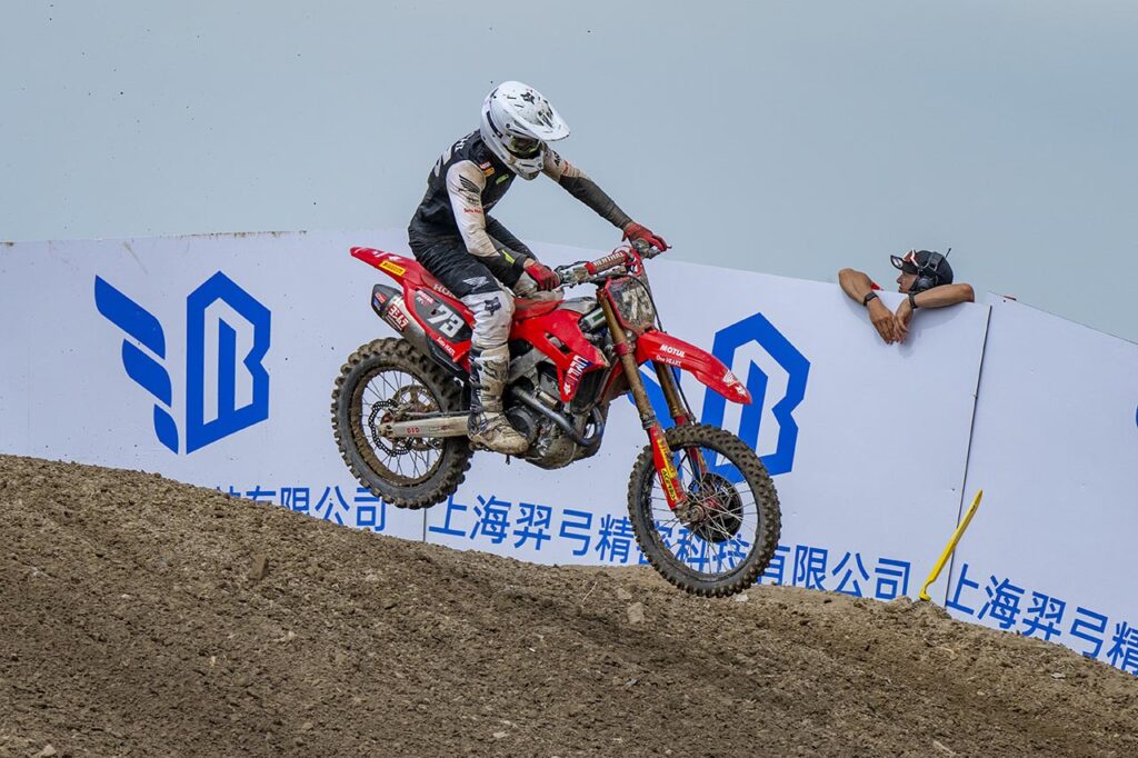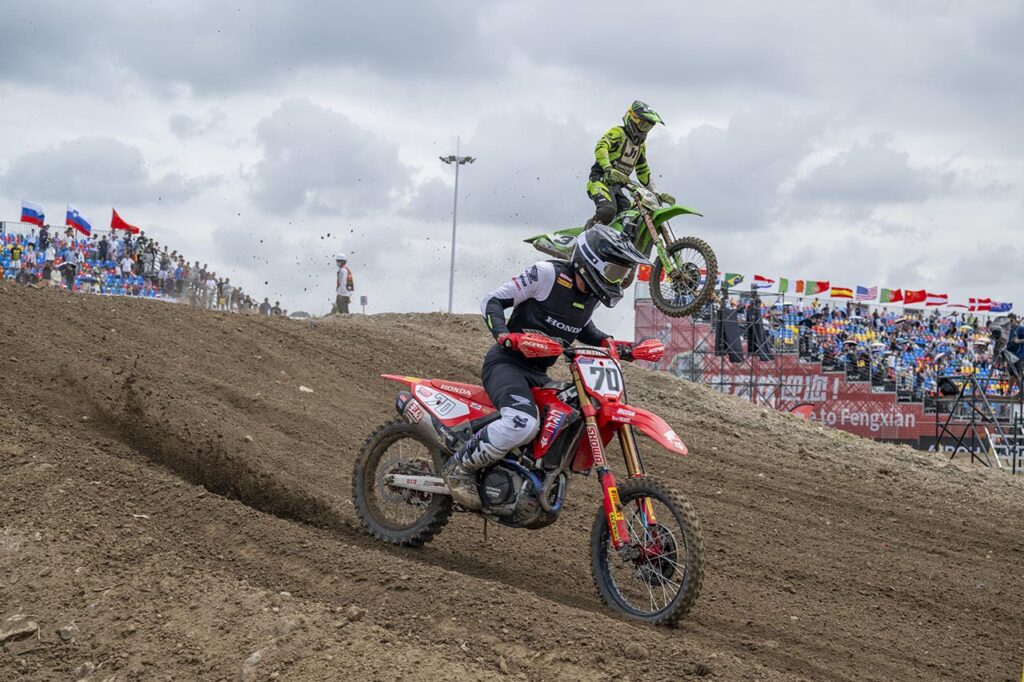 Su compañero de equipo en el HRC, Rubén Fernández (#70) sufrió menos la excursión china y sumó su primer Top5 del año. El español consiguió el cuarto puesto general tras un gran comienzo en la primera carrera, donde estuvo liderando por sobre los mejores pilotos de motocross del planeta durante la mitad de la manga, antes de sucumbir a la presión.