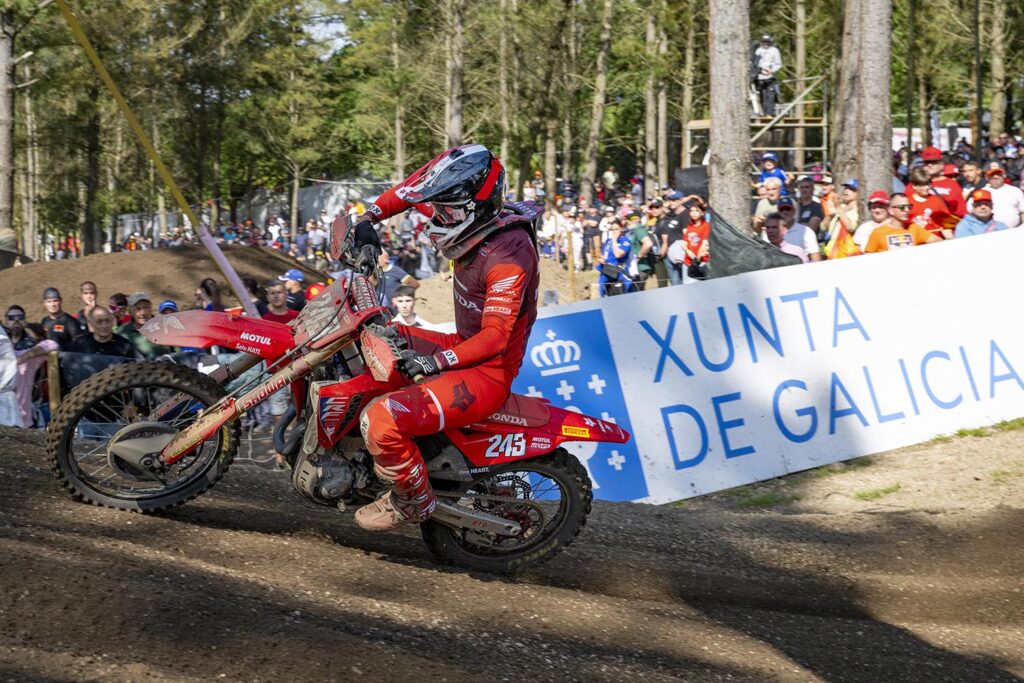 A pesar de cortar su racha de podios consecutivos, el ex campeón Tim Gajser (#243) quedó satisfecho con la labor realizada en el MXGP de Galicia, ya que demostró tener un alto nivel conductivo sobre su Honda CRF450R en el difícil trazado de Lugo, recientemente estrenado en el Mundial. El fin de semana fue perfecto para Jorge Prado (GasGas), quien se impuso en la carrera clasificatoria y en ambas mangas, para recuperar la placa roja con el #1 que lo identifica como el líder provisional del campeonato.