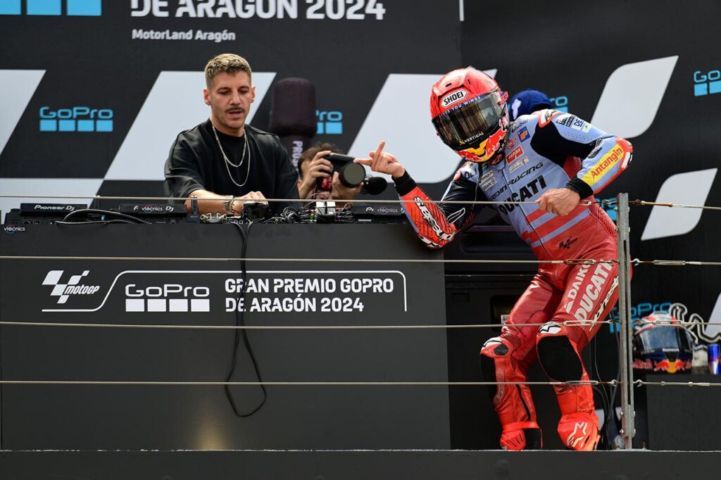 En la página italiana GPOne, Matteo Aglio transcribió una entrevista a escasos minutos de finalizada la competencia. Para introducir al lector, el colega toma como referencia el baile de Marc en el podio, cuando se montó el espectáculo con un DJ.