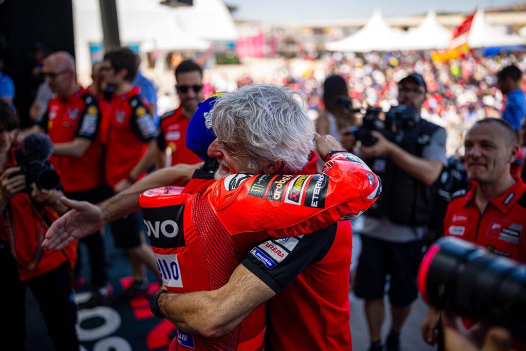 Gigi Dall’Igna tiene un par de semanas de tranquilidad. “Fue uno de los domingos más bellos de los que tengo presente en mi memoria. Estoy realmente contento, tanto por la insuperable prestación de Marc como por la recuperación de Pecco. Espero que podamos seguir en este camino…”.