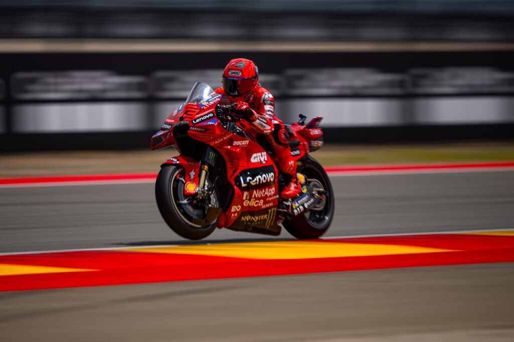 Fue tal la satisfacción en el seno del Ducati Corse por lo conseguido por ambos pilotos que el lunes, en las pruebas conjuntas que se realizaron en Aragón, Ducati se limitó a evaluar diferentes de configuraciones aerodinámicas, sin tocar ni modificar regulaciones de chasis.