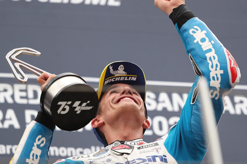 “Fue una victoria totalmente inesperada, porque largaba desde muy atrás”, comentó en la reunión de prensa. “Sin esas gotas de lluvia (que seguramente Fausto dejó caer desde el cielo) habría sido imposible pelear con los de arriba. Una cosa es quedar al frente con lo justo y otra es abrir un hueco con el actual campeón del mundo, que es muy rápido en este circuito. Es un triunfo dedicado a toda la familia Gresini”.