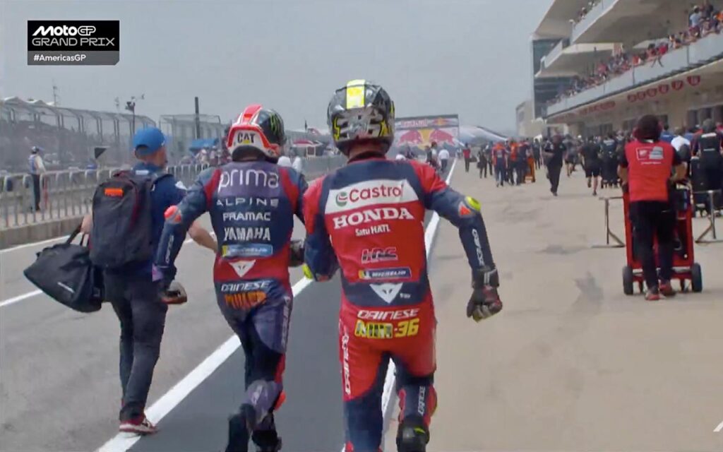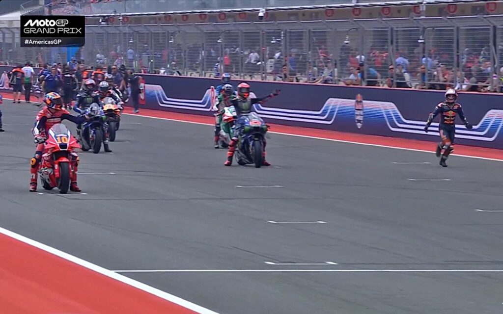 Su jugada fue perfecta. El instante en que decidió salir (literalmente) corriendo hacia boxes quedó pisado por la presentación oficial de los equipos y, cuando el vivo volvió tras la interrupción, pudo verse como Marc, Pecco, Diggia y otros parecían maratonistas en búsqueda de una imaginaria cinta al final del ‘pit lane’. La confusión fue tal, que (en una imagen que quedará para la historia), pudo verse cómo algunos pilotos se aferraban a sus motos esperando la iniciación de la vuelta previa (convencidos en la elección de sus neumáticos) y otros (como el caso de Maverick Viñales) completamente desorientados, sin la moto y buscando una puerta para ingresar al ‘pit lane’. ¡¡¡De locos!!!