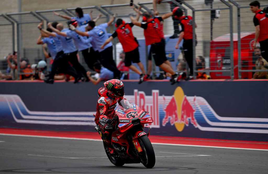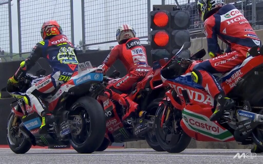 El último domingo, la caótica largada del Gran Premio en C.O.T.A. no fue producto de una improvisación. Las sucesivas batallas con la que se librará la ‘guerra psicológica’ entre los contendientes al título (léase Marc Márquez vs. Pecco Bagnaia, de momento…) tuvo su episodio americano con una arriesgada jugada estratégica, producto de un cerebro que busca aprovechar cada oportunidad para obtener cierta ventaja.