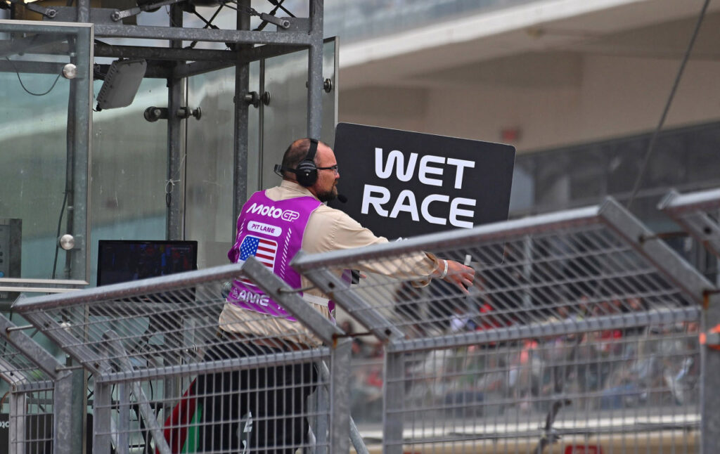 Ese momento de pavor para ‘Top Gun’ (que seguramente no conoce el reglamento tan puntillosamente como Márquez) fue salvado por Dirección de Carrera al exhibir bandera roja y posponer la largada. ¿La jugada de Marc había salido bien? ¿Tenía ahora tiempo para cambiar moto, el seteo y salir a correr de acuerdo a las actuales condiciones de pista? En parte sí y en parte no. Si bien Mike Webb (Director de la Prueba) afirmó que la bandera roja fue por el caos reinante en el ‘pit lane’ y en la grilla (con el ‘desorientado’ Maverick completamente perdido y sin saber qué hacer), en realidad hubo otro hecho que determinó la interrupción provisoria del procedimiento de largada.